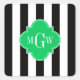 Black Wht Stripe Emerald Square 3 Monogram Sticker