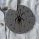 This clip art is a picture of the black widow spider with 8 legs in her web. A red dot on the back of the spider is a sign of the black widow. A nest full of babies has just escaped into her web. Available with assorted backround colours as of black, white, orange and yellow. These buttons come in square or round. Round is available in different sizes. A great Halloween button.