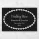 Mini wedding sparkling wine bottle labels done in black with graphics of an oval text area made of diamonds. Personalize the text for your wedding favours.