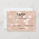 These glamourous wedding RSVP cards have a pink bokeh hearts pattern background and black text. Elegant typography adds an extra fancy touch.