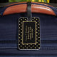 This cute luggage tag features a black background with a gold hearts pattern. You can personalize it on the front with your monogram inside a black and gold circle, by using the "personalize this template" link. The reverse side has your name in a pretty script and your address and phone # in a simple printed font.