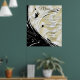 Modern Elegant Black abstract flower Silhouette on a gold silk background texture to personalize your menu poster
