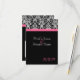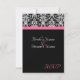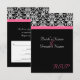 RSVP card to match our Elegant black background with fuchsia magenta hot pink accent, wedding invitation. Fresh and elegant black background with black and white damask accent, and coloured horizontal accent strip. Customize online with your wedding details.
