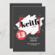 A trendy invitation with a modern red, white on black abstract design. Perfect for any age. (<a href='https://www.freepik.com/free-vector/black-friday-background-with-red-details_1368304.htm'>Designed by Freepik</a>). <br/><br/>The card is easy to customize with your wording, font, font colour, paper shape options and choice of six paper types.<br/><br/>Not exactly what you're looking for? All our products can be custom designed to meet your needs at no extra charge.<br/><br/>Simply contact us at heartfelthelper@gmail.com.<br/><br/>Coordinating products available: Just ask us!