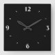 A plain black clock with large white numerals.Available in square or round shape.