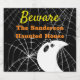 Beer Bottle Labels With "Beware" and personalized text Black with White Spider Webs and cute Modern Ghost Fun and Friendly Frightful Halloween Party / Haunted House Party.