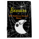 Gift Bag With "Beware" and personalized text Black with White Spider Webs and cute Modern Ghost Fun and Friendly Frightful Halloween Party / Haunted House Party.