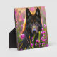 Black wolf in pink flowers plaque