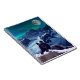 A gothic notebook featuring a hauntingly beautiful black wolf surrounded by snowy mountains under a moon lit, aurora borealis sky. Digital artwork by me 🖤