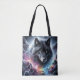 A stunning depiction of a black wolf emerging within a vibrant celestial sky, surrounded by dramatic lightning and colourful cosmic clouds.