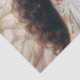 This tissue paper features a beautiful black woman angel looking introspective. She has very long, thick wavy hair and large white feathered wings, wearing an off-the-shoulder white gown. Her expression is calm as she looks off to the side.