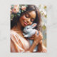 Black Woman Smiling With Cute Bunny Floral Postcard