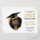 Black Woman with Black Graduation Cap and gold tassel. Class of 20XX graduation foil invitation