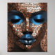 Black Womens Blue Copper Mosaic Face Wall Art Poster. Download print or email. Available in different sizes framed or unframed