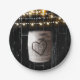 Black Wood String Lights & Barrel Rustic Wedding Paper Plate
