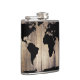 Black World Map Rustic Wood Planks Hip Flask