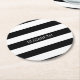 Black Wt Horizontal Preppy Stripe #2 Name Monogram Round Paper Coaster