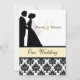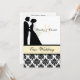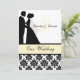 Black and white damask print with a yellow cream band, a silhouette bride and groom, and areas you can personalize with your names, monogram initial, wedding ceremony and reception information on a customized wedding invitation that's classy and traditional all in one!