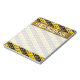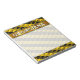 This notepad design features a pattern of black and yellow stripes containing beamed sixteenth note musical symbols. This could make a great gift for a musician, a composer, or somebody who likes to listen to music. It also features a customizable name within a faux gold like coloured area. [~Z0000037]