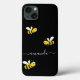 Decorated with happy, smiling yellow and black bumblebees. A chic black background.