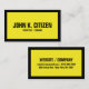 Bold, thick border business card. Simple, strong and impactful design. Large plain black border and large bold text on yellow background.