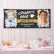 Celebrate your graduate with this congrats grad banner with a chalkboard background and two photos of the graduate, one of him as a baby and one of him at his current age. CONGRATS GRAD in a distressed font and the grad's name on a yellow banner. Cool graduation banner personalized with photos of your son and his name in a cool distressed font.