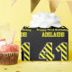 This attention-grabbing, bold, birthday-themed wrapping paper design features a large number "41", with a yellow and black striped pattern. It also features the message "Happy 41st Birthday,", and a custom name. The background is coloured black. Wrapping paper like this might be a fun way of wrapping a birthday present or gift being given to somebody who is celebrating their 41st birthday. [~Z0000381]