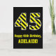 Black & Yellow Striped "45"; 45th Birthday + Name Card