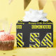 This attention-grabbing, bold, birthday-themed wrapping paper design features a large number "54", with a yellow and black striped pattern. It also features the message "Happy 54th Birthday,", and a personalized name. The background is coloured black. Fun wrapping paper like this might be used when wrapping presents being given to somebody in celebration of their 54th birthday. [~Z0000381]