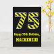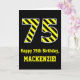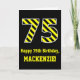 Black & Yellow Striped "75"; 75th Birthday + Name Card