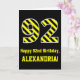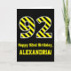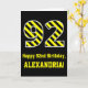 Black & Yellow Striped "92"; 92nd Birthday + Name Card