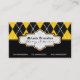 Black yellow white argyle trendy business cards