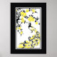 Black, yellow, white peacock and cherry blossoms poster