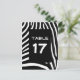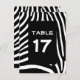 Zebra stripes pattern in black and white with room for a table number. You can customize and erase the word "Table" and centre the number.