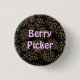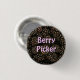 Photograph of lots of blackberries printed to edges of button with customizable text, "Berry PIcker" printed in the centre.