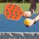 Blackberry fruit on orange pickleball paddle