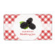 Customizable retro jar labels for homemade blackberry jam, jelly or preserves with fresh blackberries on red and white gingham tablecloth pattern.