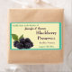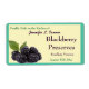 Rich ripe blackberries with leaves behind them are tucked into the left lower corner of this label with a background of pale yellow all surrounded by a border and background of moderate turquoise green which make this a perfect label to use on your jars of homemade blackberry jam or preserves. The text is in template form so you can change it to whatever you wish.
