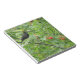 This awesome notepad features a photograph of a blackbird sitting in a tree. Hanging from the tree are groups of bright red berries. This photo was taken during the height of summer.