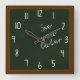 A blackboard wall clock with chalkboard writing letters and the slogan: See you later.