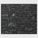 Blackboard inscribed with scientific formulas and calculations in physics and mathematics. Science and education background.