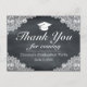 Graduation Thank You postcard. Black chalk board background and white lace decor.