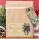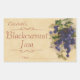 A vintage style label for jams and jellies with an illustration of dark purple blackcurrants on a branch with green leaves, made from an old postcard painting, with brown coloured scrolls and text. The date can be left for writing the date, or change the dotted text to the year you require.