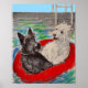 Enjoying a pleasant day while bouncing along in a raft are Scottie dogs Blackie and Whitie. Wouldn’t you love to join them? I know I would. Note that my store has more hand-coloured (by moi) images of Blackie and Whitie enjoying life.