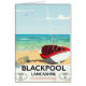 Blackpool, lancashire, Angleterre poster de train de style vintage d'un vieux rameur ou bateau de pêche sur la plage de sable.