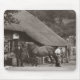 A vintage photograph showing a farrier shoeing a horse outside an old thatched forge in England in the early 1920s