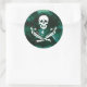 Round Meditating Emerald Jolly-Roger looking skeleton with his third eye opened.