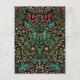 A postcard with the pattern by William Morris (1834-1896), entitled Blackthorn (1892). A meadow of flowers, consisting of blue viola, yellow daisies and red fritillary with a background of white blossoming blackthorn bush.