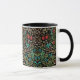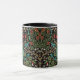 A coffee mug with the pattern by William Morris (1834-1896), entitled Blackthorn (1892). A meadow of flowers, consisting of blue viola, yellow daisies and red fritillary with a background of white blossoming blackthorn bush.