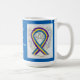 Bladder Cancer uses a blue, marigold, and purple ribbon awareness ribbon to show support for its awareness. This custom mug features a blue, marigold, and purple ribbon awareness ribbon guardian angel art paintings with the message "I Hope and Support Bladder Cancer Awareness!" The custom blue, marigold, and purple ribbon awareness guardian angel ribbon art picture coffee cups or mugs can be customized with personalized messages to make great cause mugs for awareness fundraisers, awareness cup gifts, or other special events or cause support occasions. Make your own customized words for a personal message of hope and support to share!